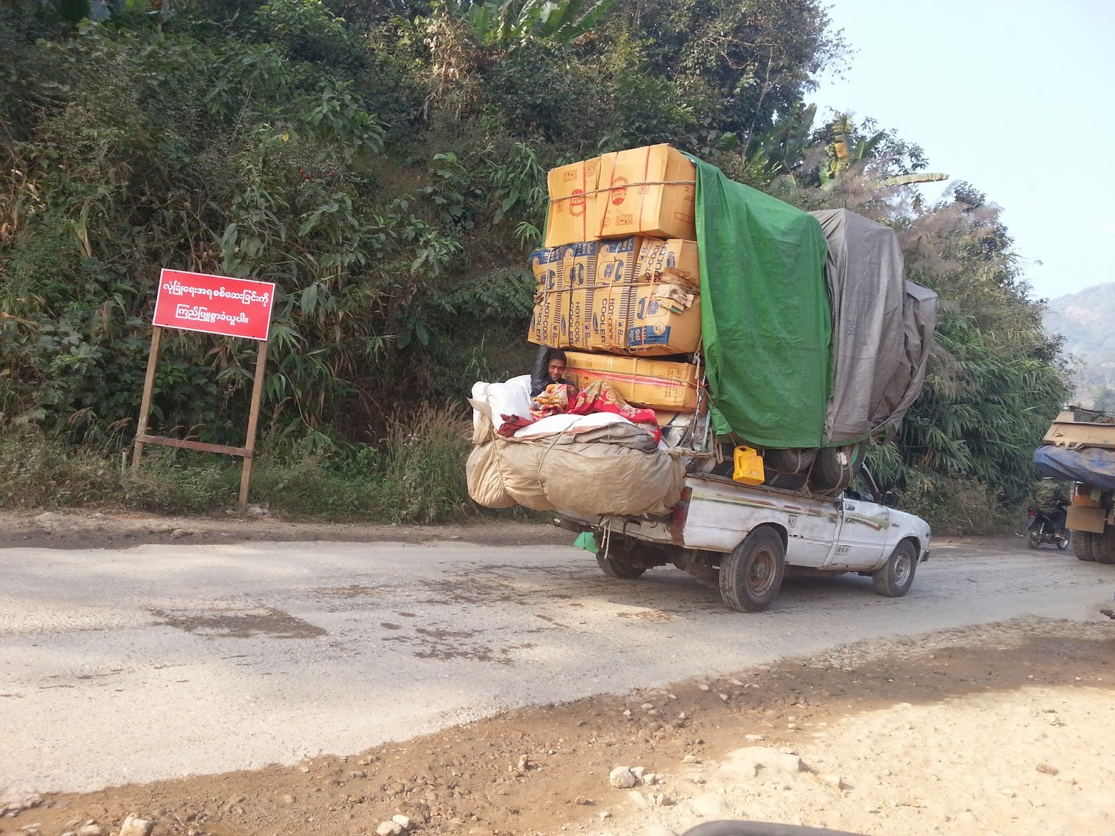 In the end we found ourselves the next morning in an aging sedan with the driver and I in the front, and 4 in the back seat - my wife and the children. Then the fun began - that road was not only narrow, but in extremely bad condition and trafficked by outrageously overloaded pickup trucks.