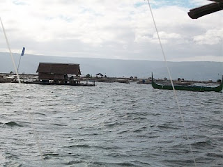 For my son it was a great adventure. Just to see the lake and the volcanoes on the island. He silently drank it all in. I'd ask him "Are you alright?" "Happy?" - he just nodded and kept looking. The trip to the volcano will sink deep into his childhood memories - a long motorized outrigger trip past islands populated by little fishing villages, regions of rectangular fish farms. I explained to him that it was his great grandfather who'd identified the Tilapia as an ideal fish for aquaculture while working as a scientific adviser for the British colonial office in east Africa after World War II.